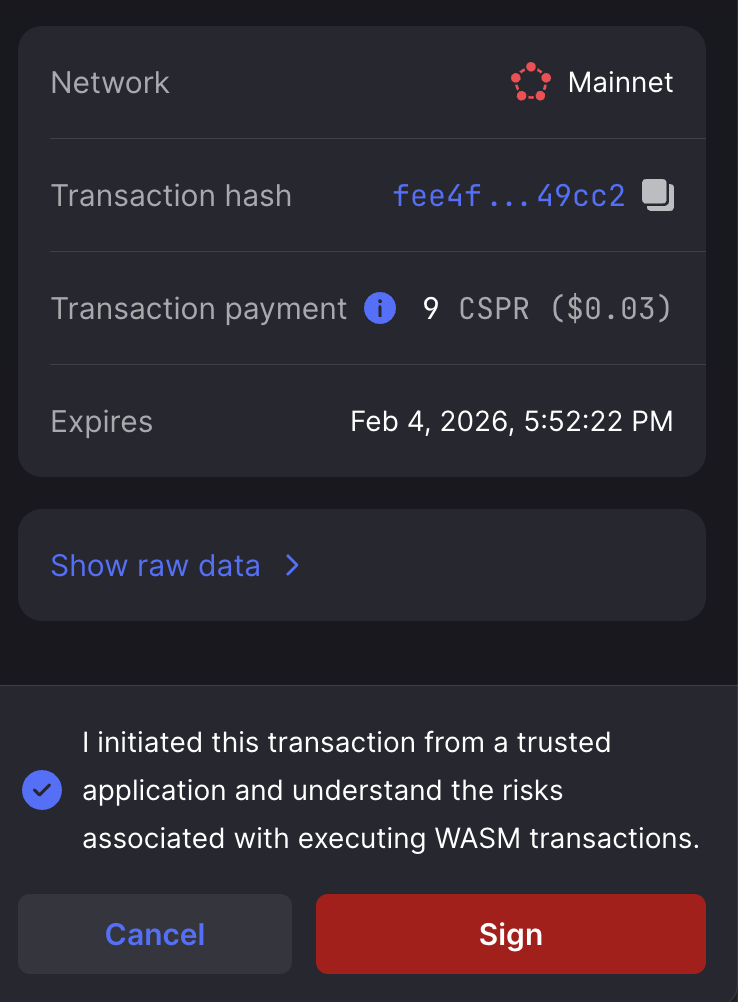 After completion, your CSPR balance will increase.